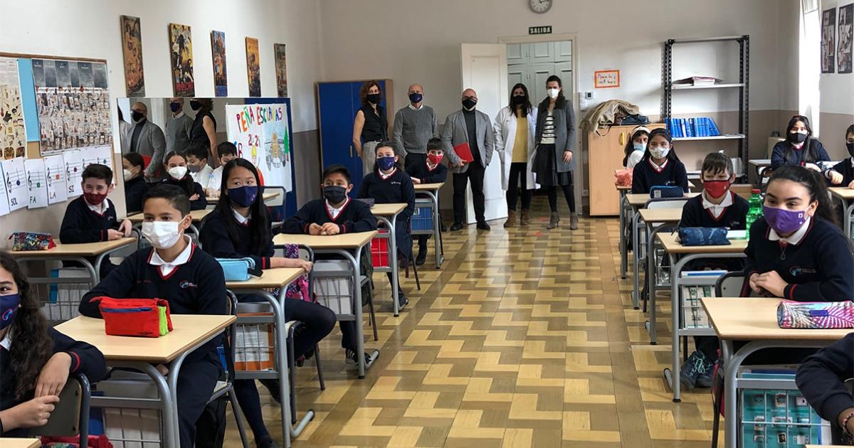 El consejero Cigudosa, con alumnado, representantes de AIN y del centro