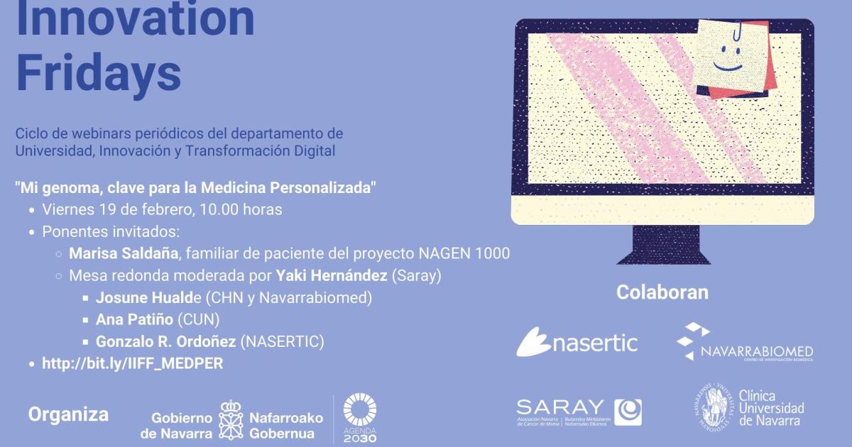 El departamento de Universidad, Innovación y Transformación Digital organiza la jornada digital del próximo 19 de febrero a las 10.00 horas sobre Medicina Personalizada, con la colaboración de NASERTIC, Navarrabiomed, Clínica Universidad de Navarra y la Asociación SARAY.