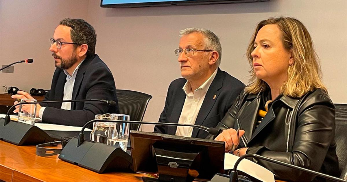 El vicepresidente Taberna en su comparecencia de hoy en el Parlamento de Navarra, junto a Joseba Asiain