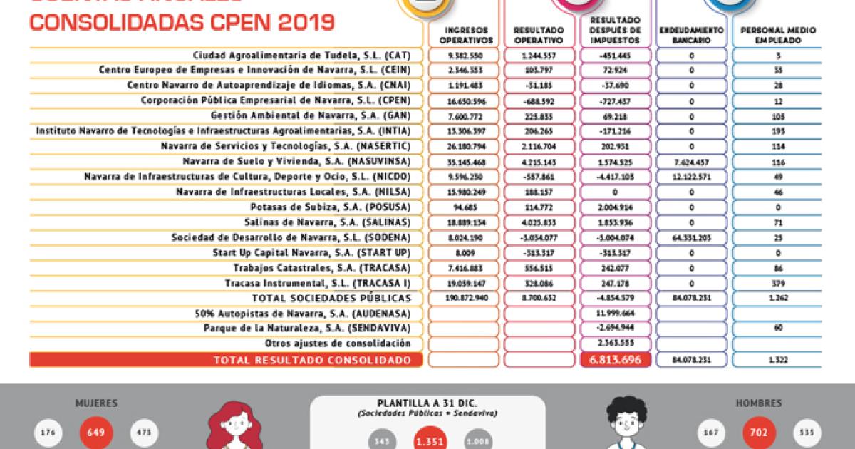 El Consejo de Administración de la Corporación Pública Empresarial de Navarra –empresa matriz de las sociedades públicas de Gobierno de Navarra- ha formulado las cuentas anuales de 2019, cuyo balance arroja un resultado positivo consolidado de 6,81 millones de euros.