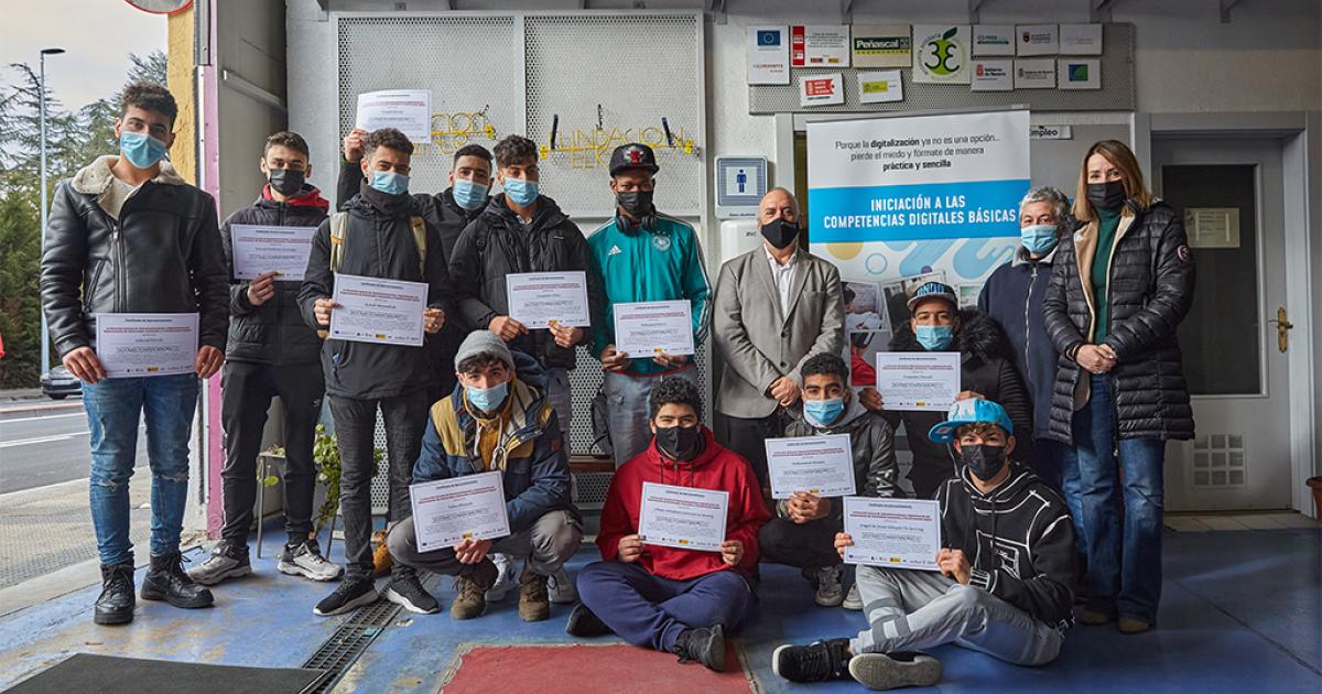 El consejero de Universidad, Innovación y Transformación Digital, Juan Cruz Cigudosa, ha hecho entrega esta mañana de los diplomas de aprovechamiento a los 16 jóvenes asistentes al curso "Iniciación a las competencias digitales básicas", impartido durante las dos últimas semanas en las instalaciones de la Fundación Elkarte, en Pamplona.