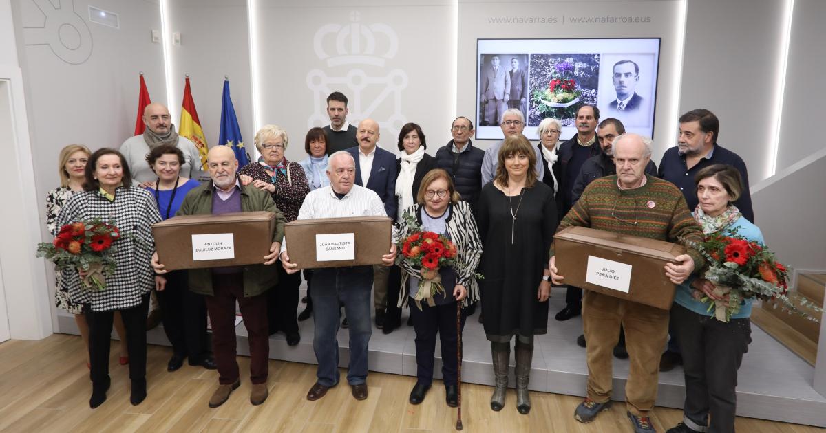 El Gobierno de Navarra entrega los restos de Antolín Eguiluz, Julio Peña y Juan Bautista Sansano a sus familiares