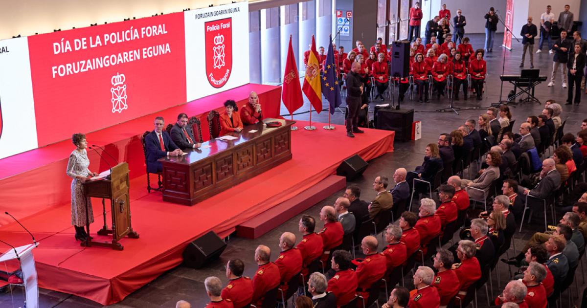 El acto se ha desarrollado en la sala de exposiciones de Baluarte y ha estado presidido por la Presidenta de Navarra, María Chivite, junto con el presidente del Parlamento de Navarra, Unai Hualde; la consejera de Interior, Función Pública y Justicia, Inma Jurío, el director general de Interior, Salvador Diez, y el jefe de la Policía Foral, Iván Ortueta, entre otras autoridades e integrantes del Ejecutivo foral.